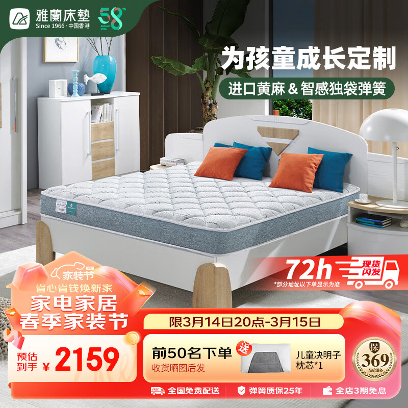 雅兰抑菌面料进口乳胶黄麻床垫 独袋弹簧er童床垫 蘭精灵 1.2*1.9米价格:3159.00元!