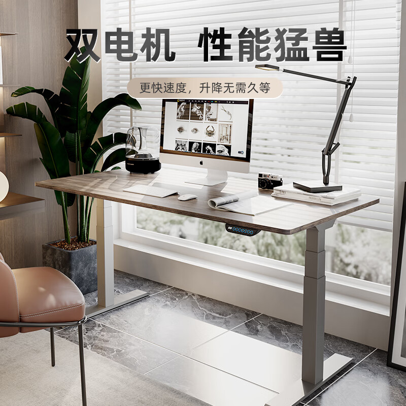4、很好的升降桌,用料扎实,很稳重,升很高用起来也不会晃。升降快速,双电机,很静音,晚上也不吵。