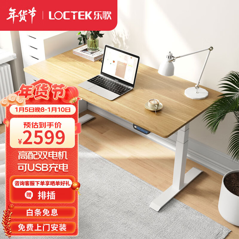 乐歌电动升降桌电脑桌站立办公学习桌写字书桌 E5-N/1.4m原木色套装价格:2869.00元!