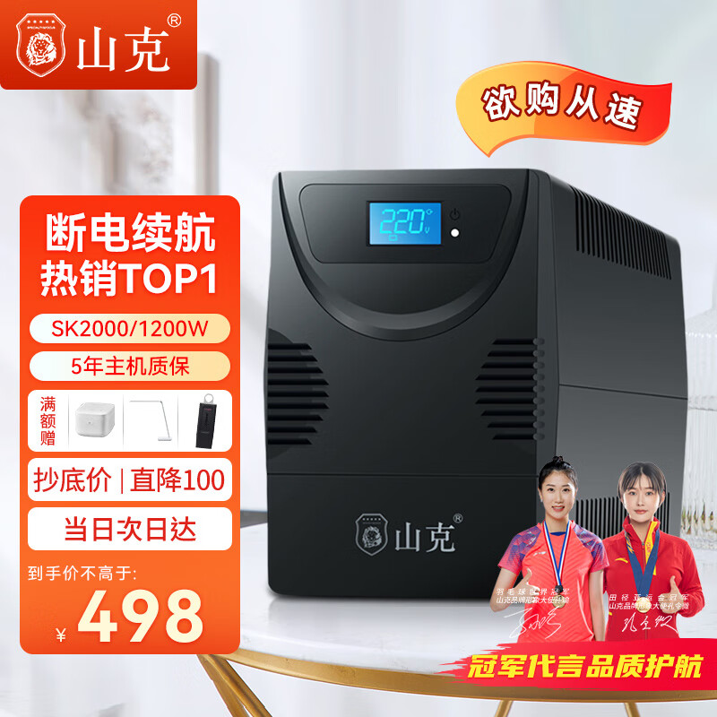 山克SK2000 ups不间断电源2000VA/1200W家用办公电脑稳压应急备用ups电源价格:498.00元!
