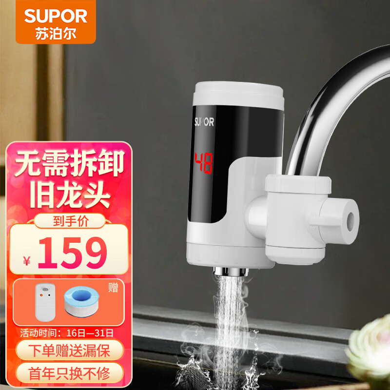 苏泊尔(SUPOR) 电热水龙头速热即热式加热厨房宝接驳式快速热电热水器冷热两用家用卫浴阳台加热器274247-01-CP价格:169.00元!