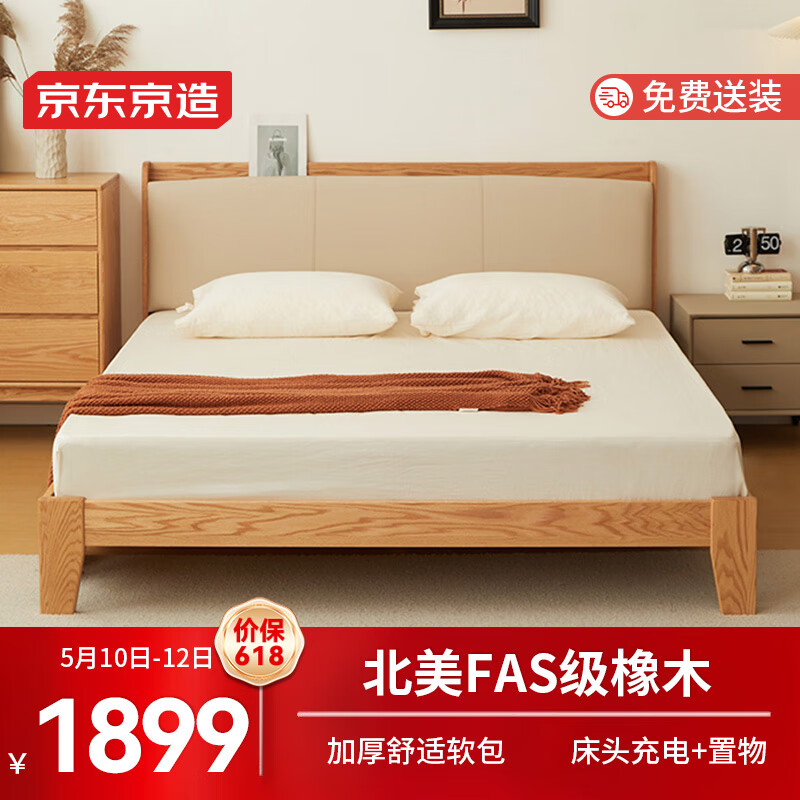 京东京造实木床 FAS级橡木|软包床头|大板厚材 主卧双人床1.5×2米BW06价格:2199.00元!