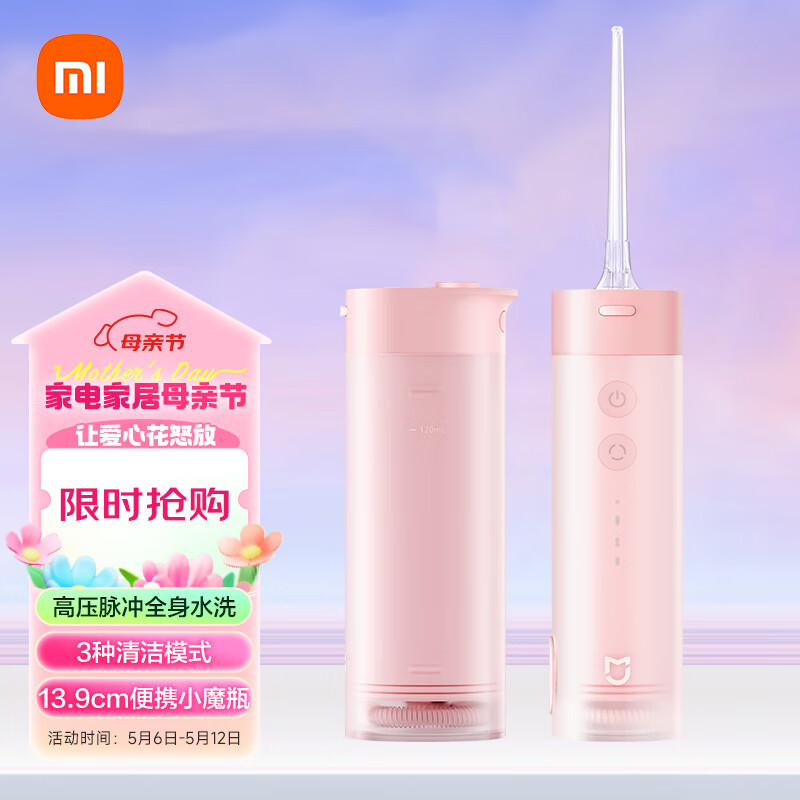 米家 小米便携式冲牙器洗牙器清洁口腔 高压脉冲全身水洗 60天长续航 樱花粉 礼物推荐价格:199.00元!