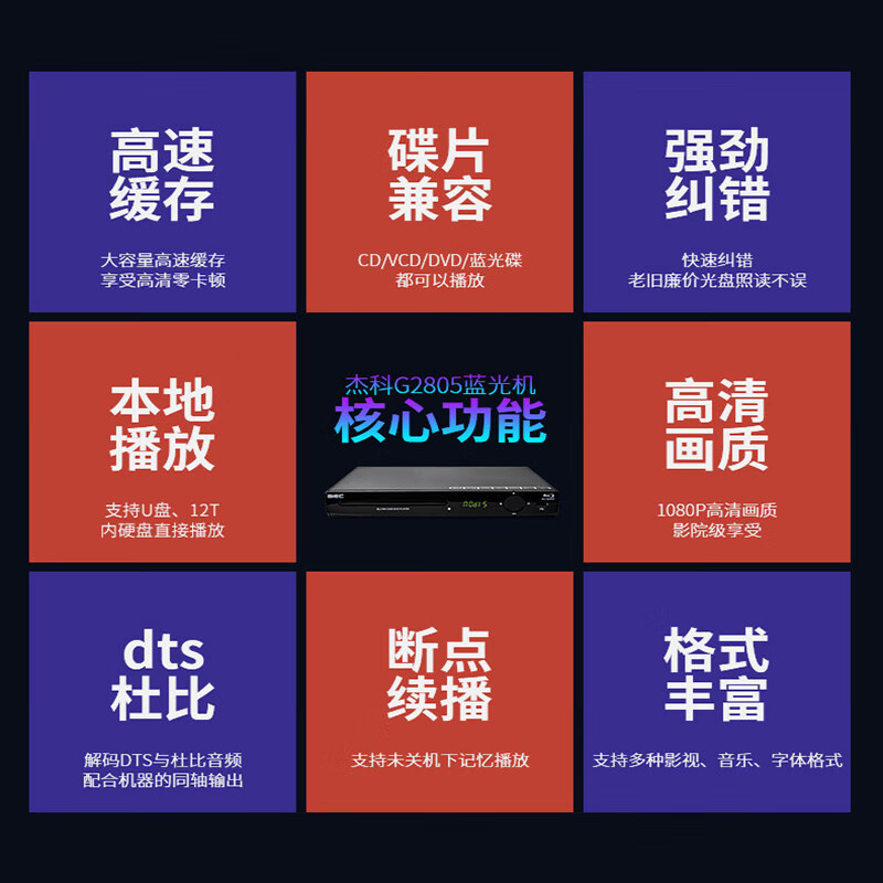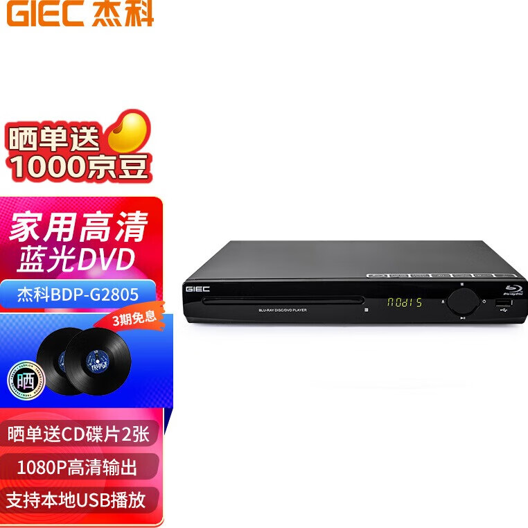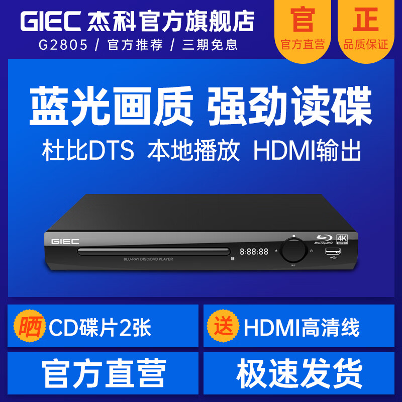 杰科(GIEC)BDP-G2805蓝光播放机 dvd播放机 vcd 影碟机 cd机播放器 高清 硬盘 碟片光盘播放机价格:649.00元!