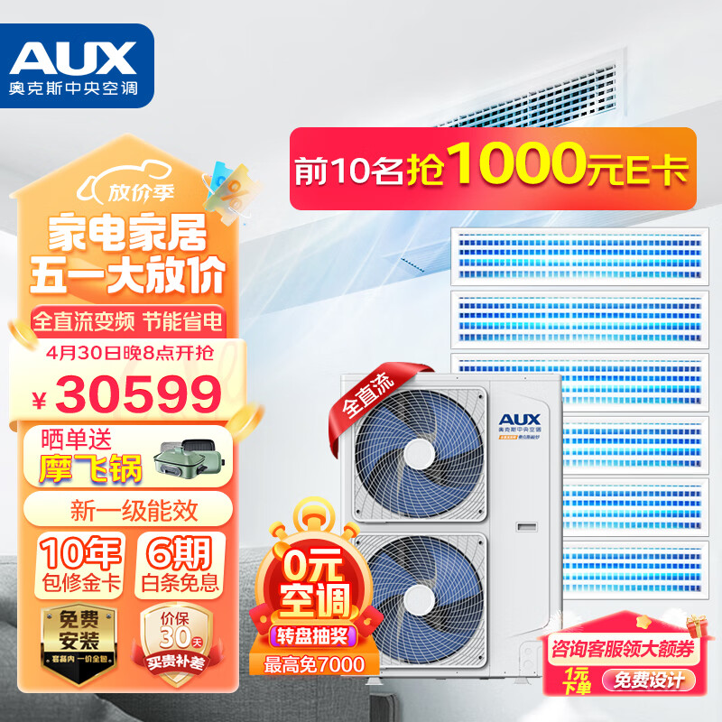 奥克斯(AUX)中央空调一拖六风管机空调大6匹家用多联机全直流变频一级能效包安装嵌入式空调DLR-160W/DCJ2S-JM价格:30599.00元!