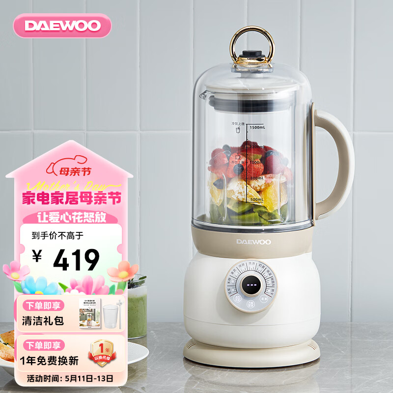 大宇(DAEWOO)破壁机低音豆浆机迷你全自动免手洗搅拌机营养调理机家用FP02奶糖白价格:419.00元!
