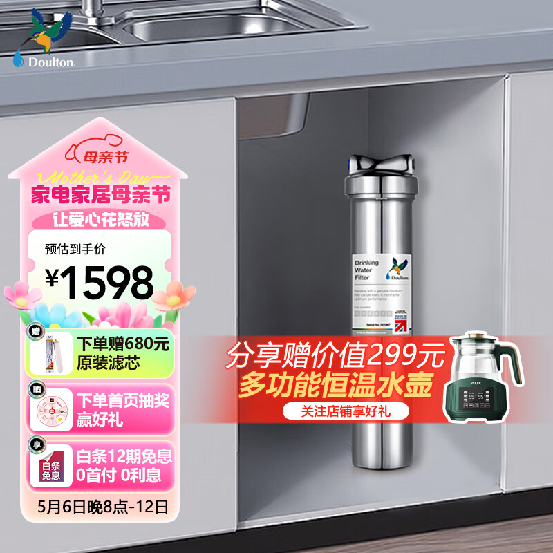 道尔顿(Doulton)净水器家用直饮 厨房自来水龙头过滤器矽藻陶瓷净水机超滤无废水厨下式可清洗D-IS价格:1878.00元!