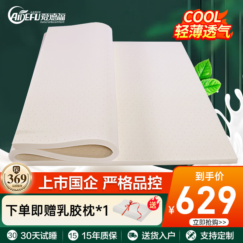 爱德福乳胶床垫 薄款3cm泰国天然橡胶2cm榻榻米床褥 可定制150*200*4cm价格:729.00元!