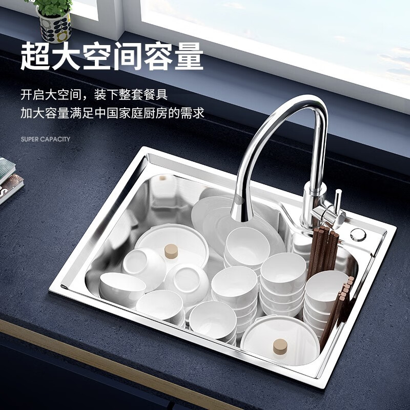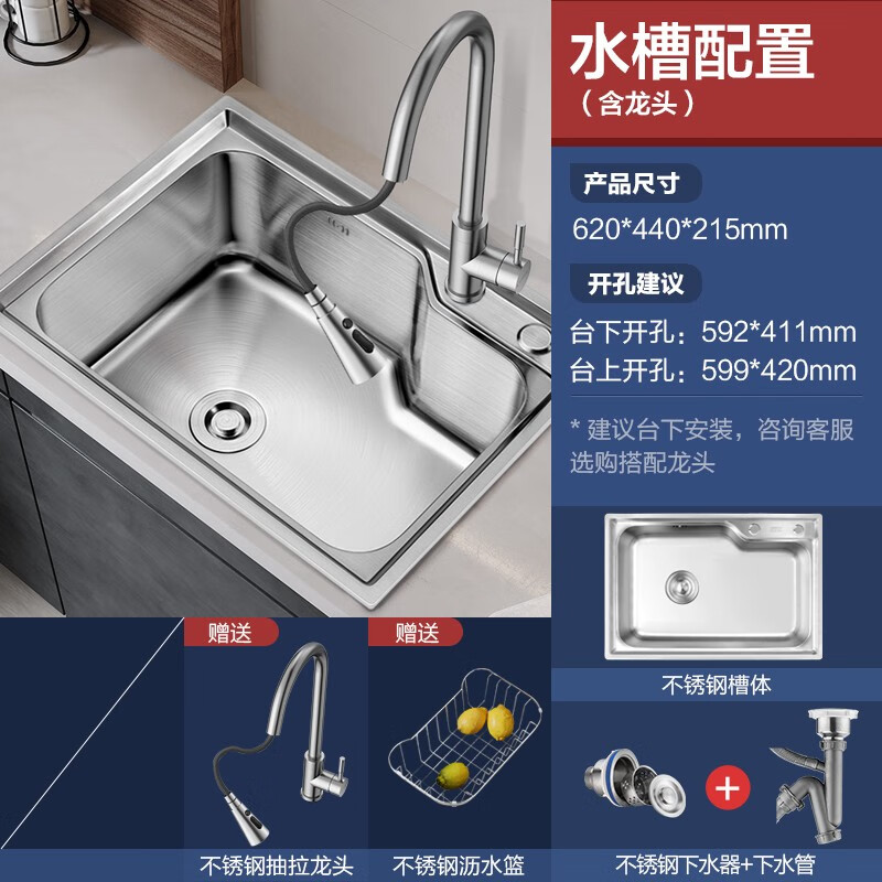 箭牌(ARROW)304不锈钢厨房水槽龙头套装小户型洗菜盆单槽支持台上台下槽安装 B2款 62*44cm+冷热抽拉龙头价格:1169.00元!