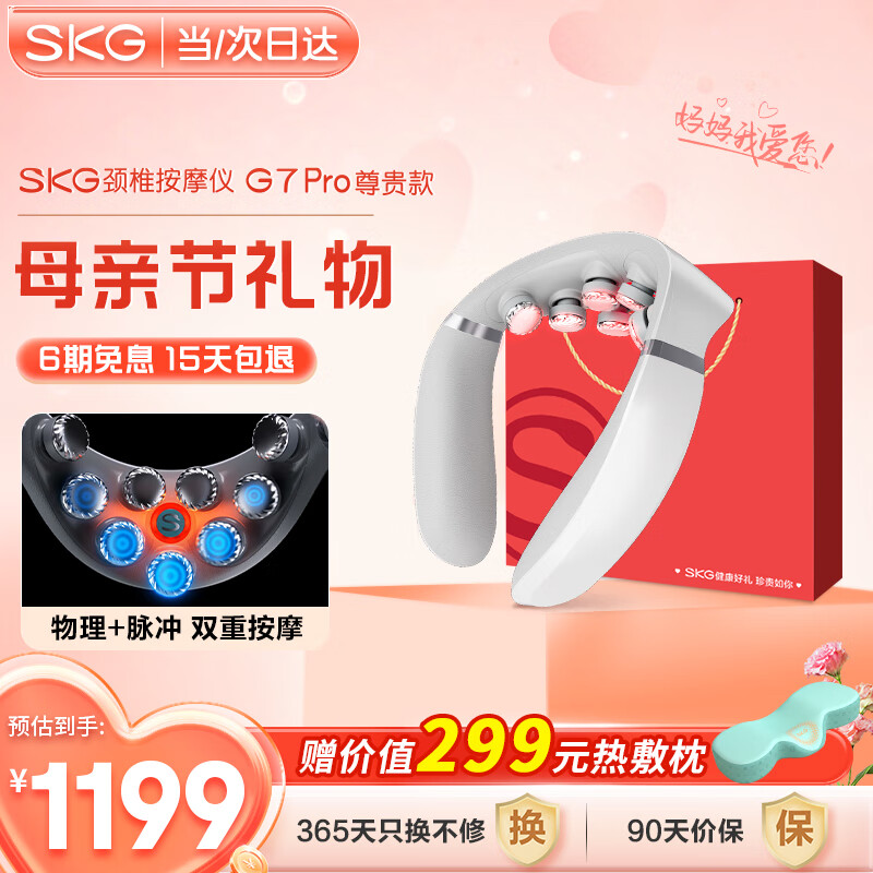 SKG颈椎按摩器折叠按摩仪肩颈颈部热敷物理脉冲推揉口袋按摩仪母亲节礼物实用送妈妈生日送男女友礼品 【脉冲推揉一体】G7Pro尊贵价格:1399.00元!