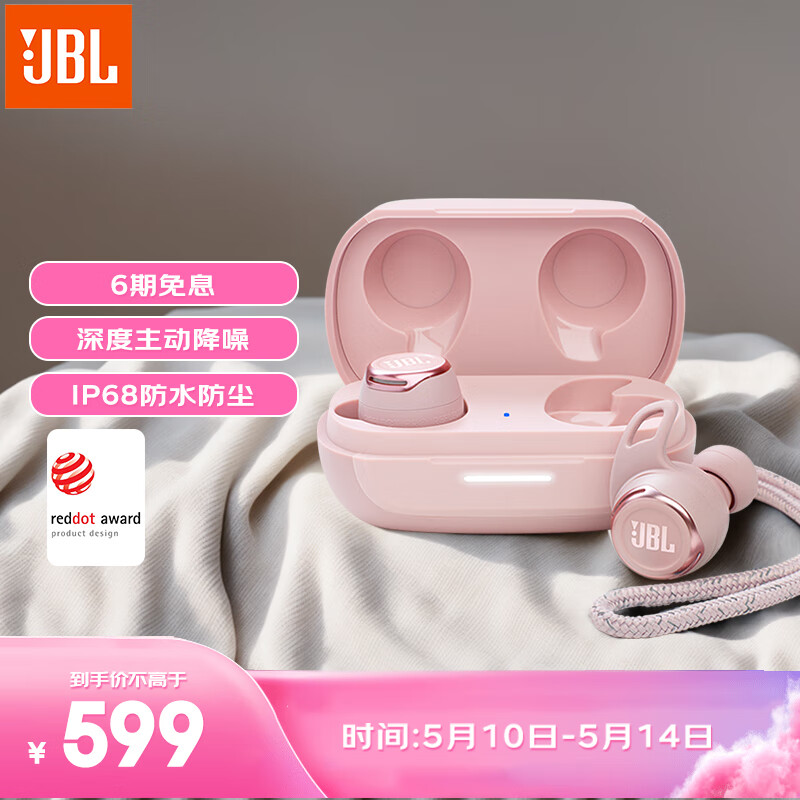 JBL Reflect flow pro 真无线运动蓝牙耳机入耳式主动降噪耳麦 高音质音乐游戏耳机 粉色价格:599.00元!