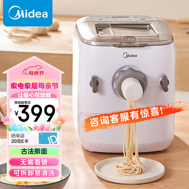 美的(Midea)面条机 压面机家用 全自动电动饺子皮机一体机和面 智能小型家庭用揉面【9大模式出面】15Q1-401价格:399.00元!