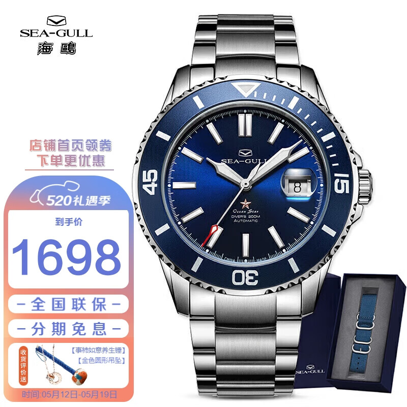 海鸥(SEAGULL)手表男士自动机械表 男表 海洋之星200米防水潜水腕表816.523(蓝)价格:1878.00元!