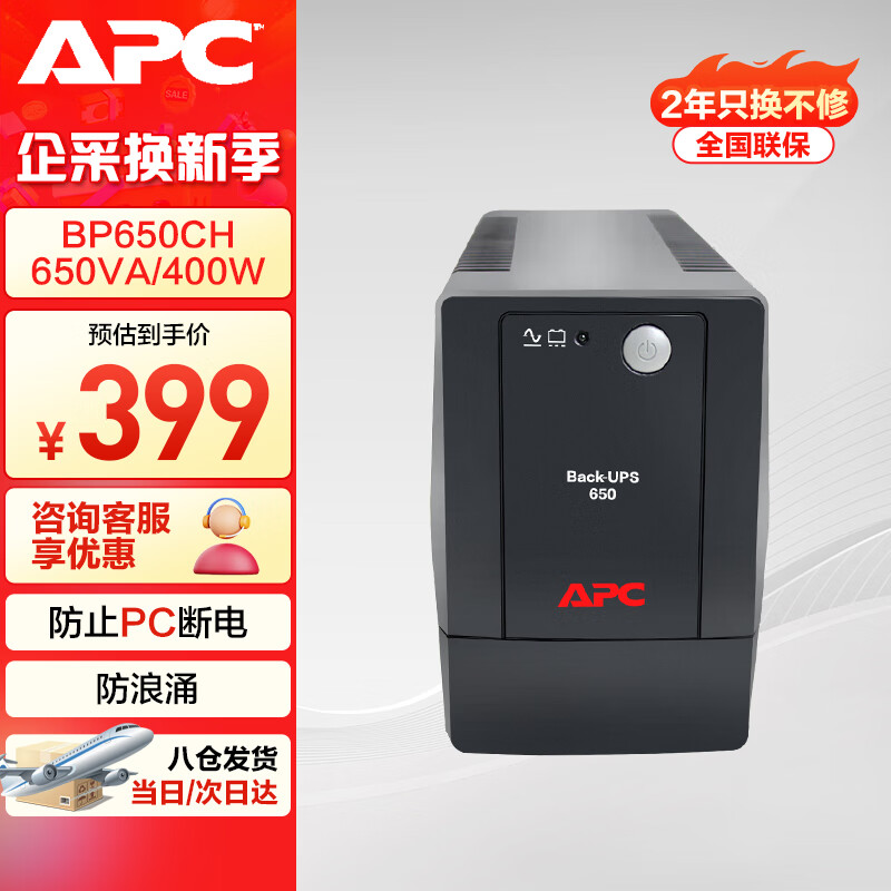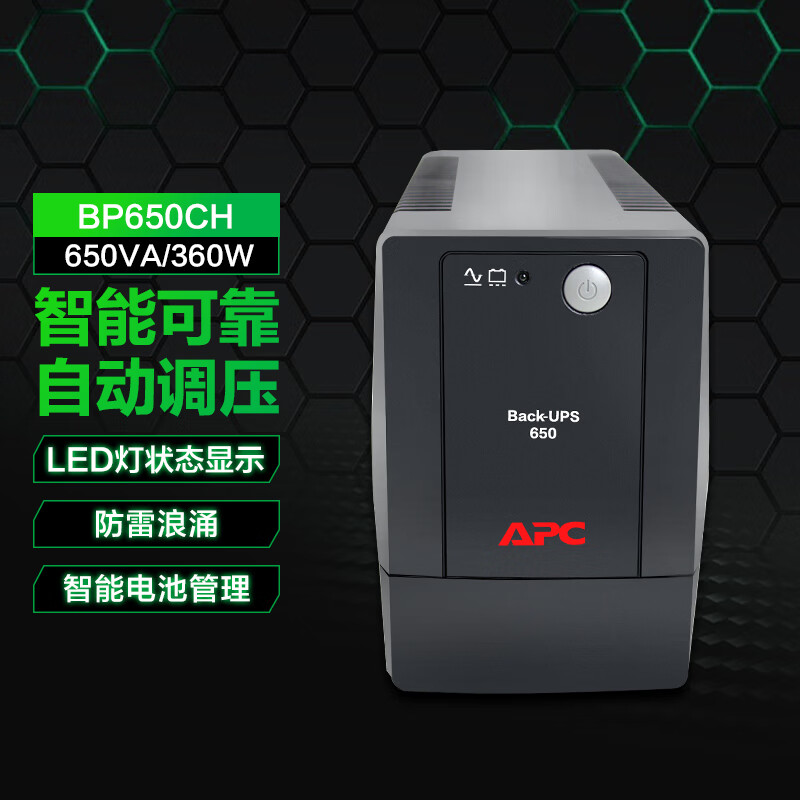 APC施耐德ups不间断电源BP650CH 360W/650VA办公电脑网络路由应急备用电源电池价格:399.00元!