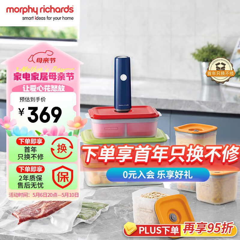 摩飞电器(Morphyrichards)无线抽真空机 全自动家用大吸力包装机真空棒 干湿两用长续航食材保鲜机【配真空保鲜罐】MR1119价格:369.00元!