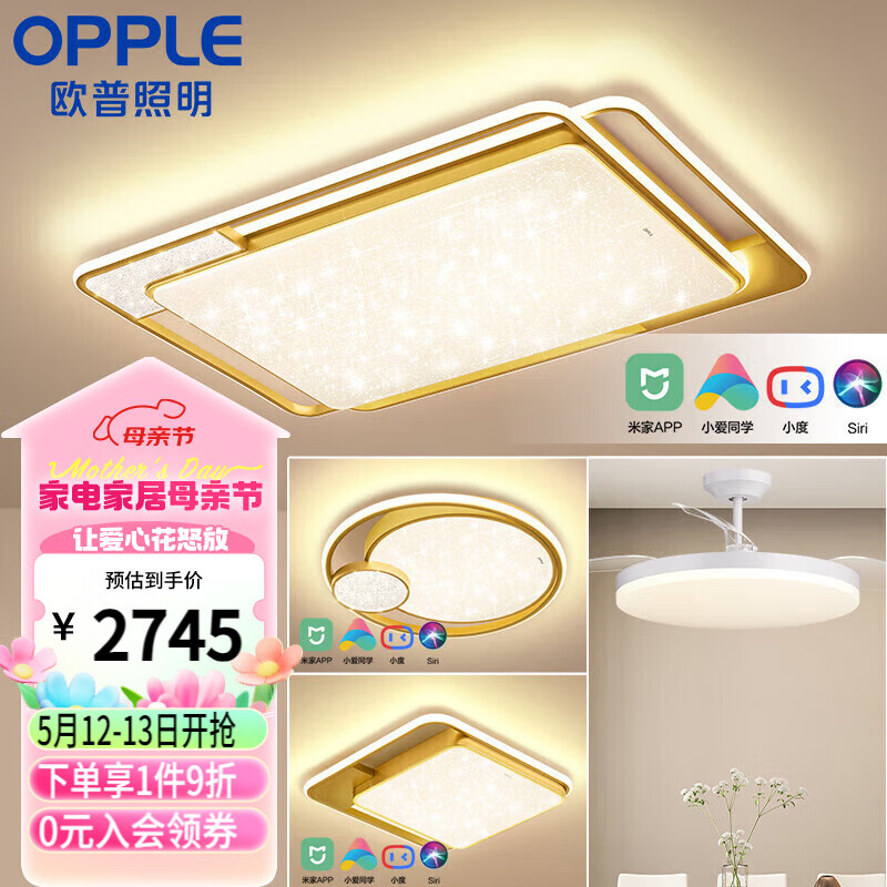 欧普(OPPLE)吸顶灯几何现代简约LED客厅卧室餐厅灯具套餐智能语音调光 套餐3价格:3050.00元!