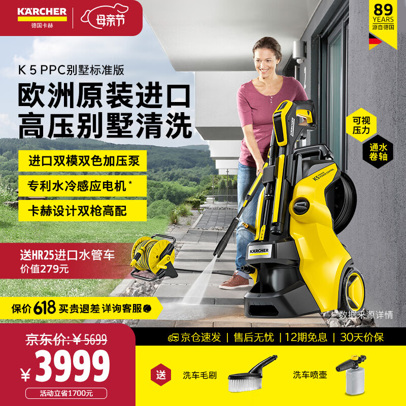KARCHER德国卡赫家用洗车机 洗车高压水枪220V别墅庭院清洗进口K5PPC标准价格:4439.00元!