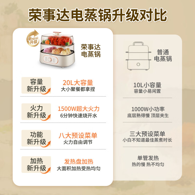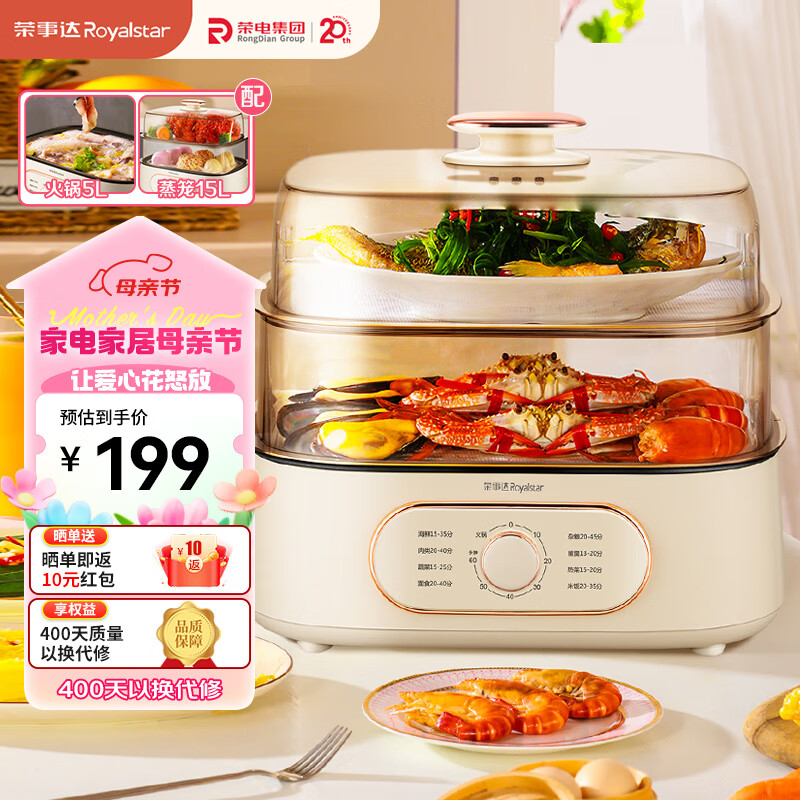荣事达(Royalstar)电火锅多功能家用电蒸锅 电煮锅 电锅蒸包子锅电热锅煮蛋器三层蒸笼大容量RS-ZG818Q价格:189.00元!