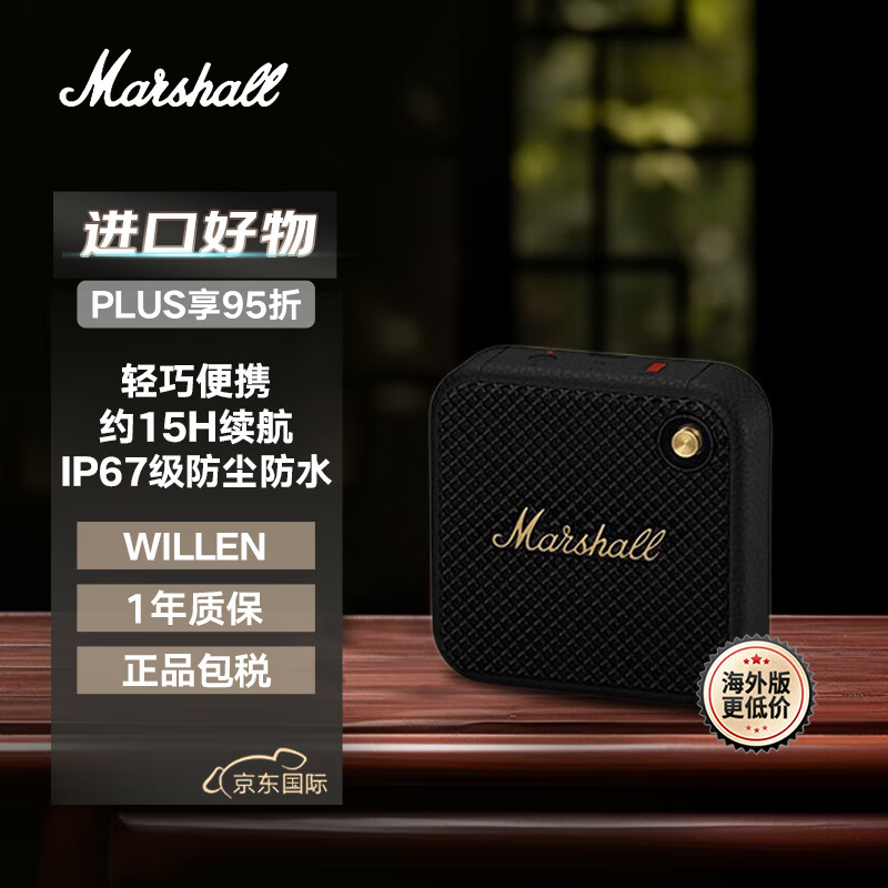 MARSHALL(马歇尔)WILLEN 音箱便携式蓝牙无线家用户外防尘防水小音响 黑金色价格:749.00元!