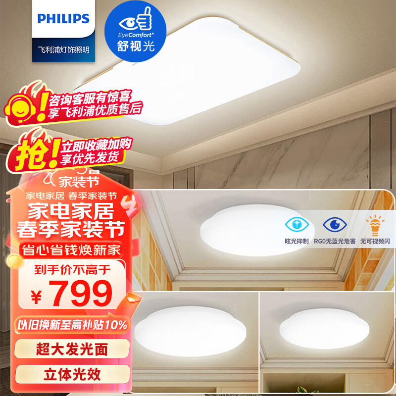 飞利浦(PHILIPS)led吸顶灯客厅灯现代简约餐厅灯三色可调灯具套餐三室一厅 品逸价格:1299.00元!