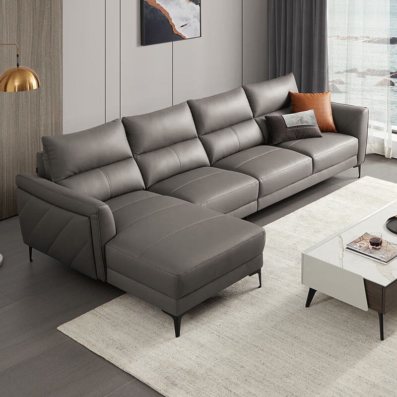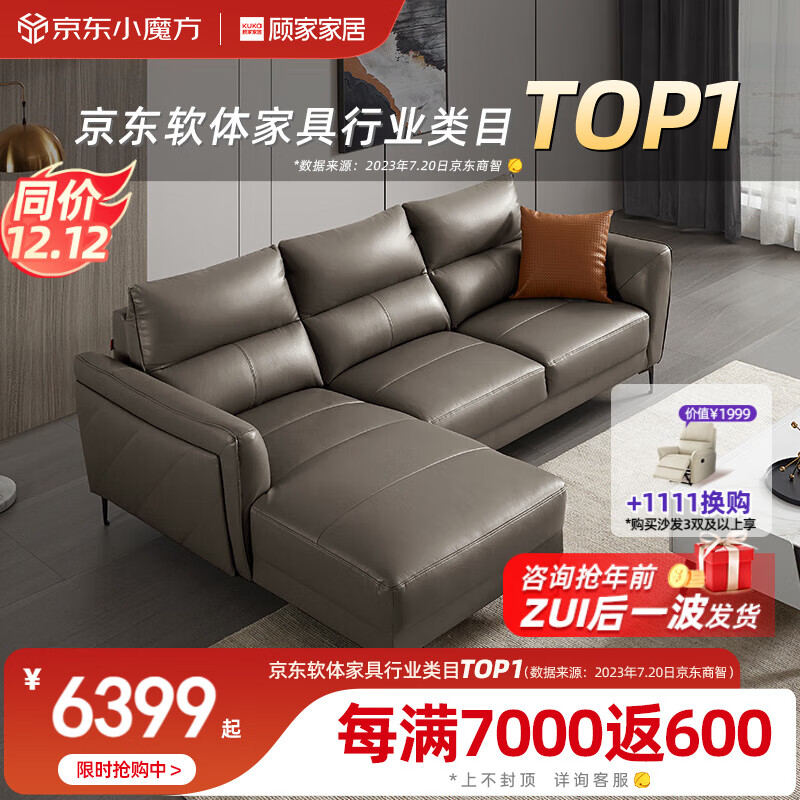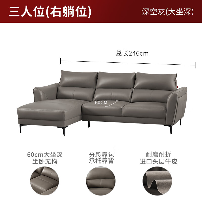 顾家家居(KUKA)皮沙发现代轻奢沙发客厅沙发1107【深空灰】三人位右躺位大坐深价格:6399.00元!