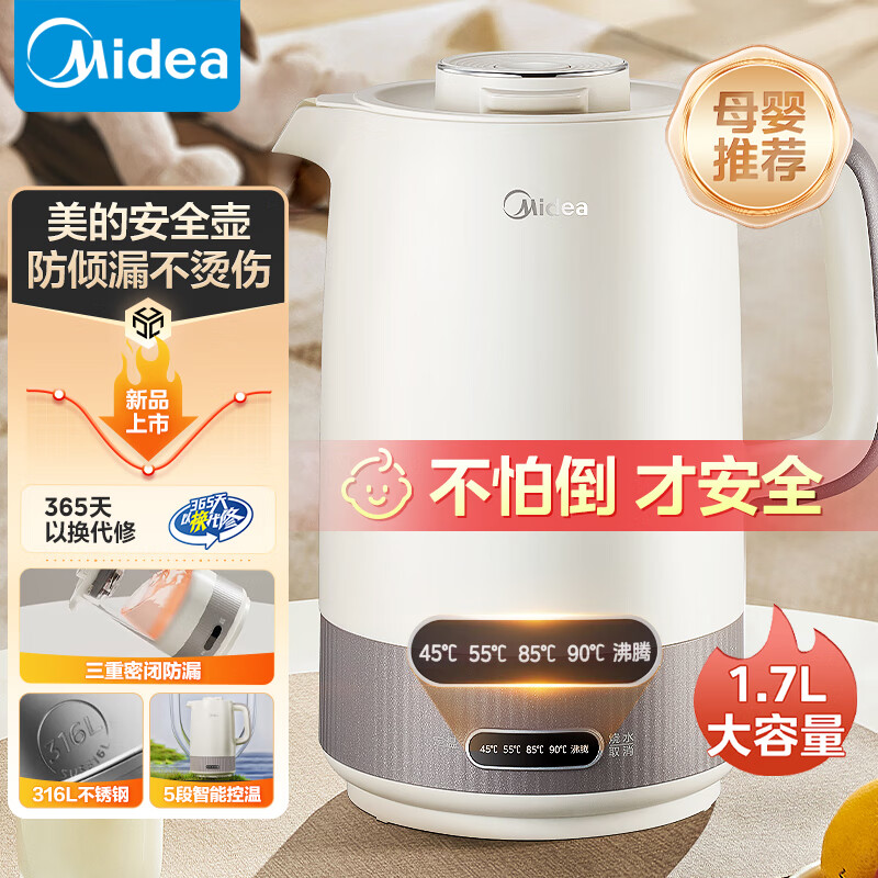 美的壶烧水壶防倾漏不烫伤 热水壶电热水壶电水壶 保温恒温控温 316L不锈钢1.7L大容量MK-SH21-I价格:329.00元!