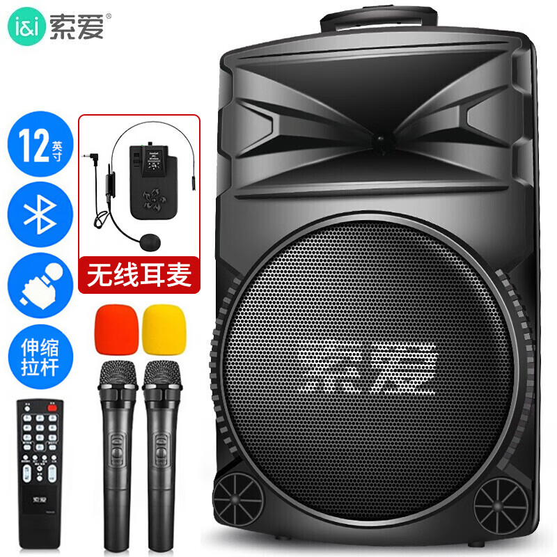 索爱(soaiy)A93 12英寸广场舞音响大功率低音炮移动户外K歌蓝牙拉杆麦克风音箱扩音器无线话筒摊摆摊喇叭价格:399.00元!