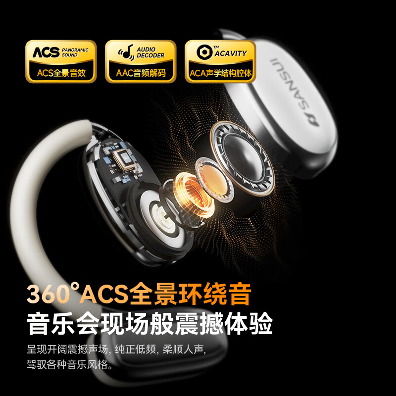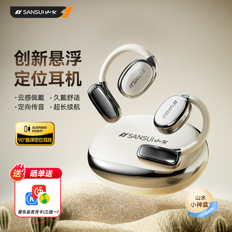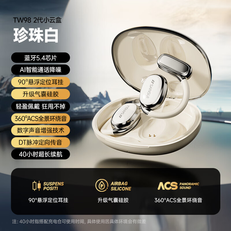 山水(SANSUI)TW98【品牌力荐】无线蓝牙耳机 骨传导概念挂耳夹耳开放式不入耳长续航运动降噪适用华为苹果 白价格:308.00元!