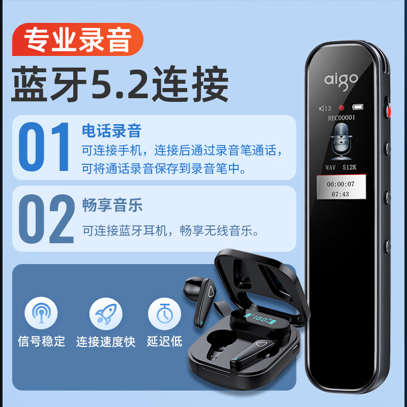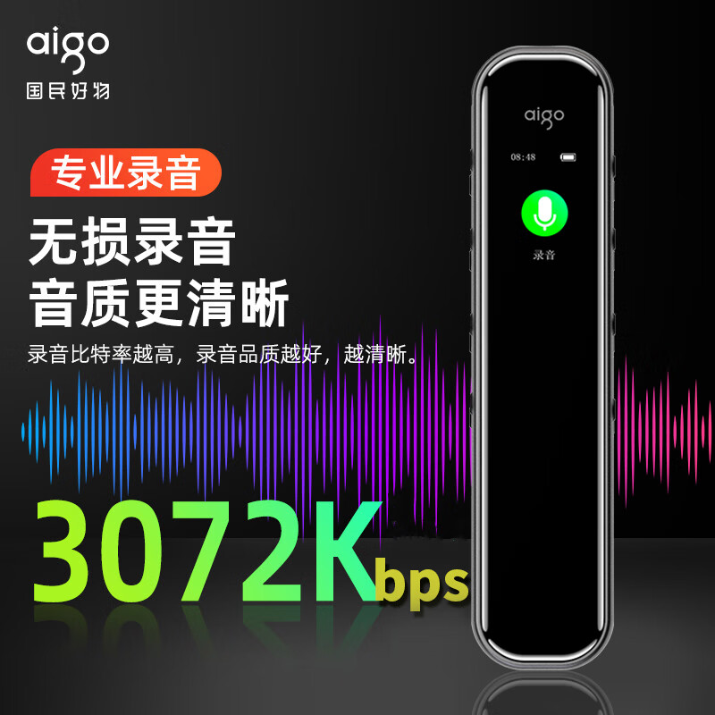 爱国者 aigo录音笔R3312pro 一键录音专业录音高清降噪 学习培训商务会议采访 录音器 MP3播放 灰色 64G价格:239.00元!
