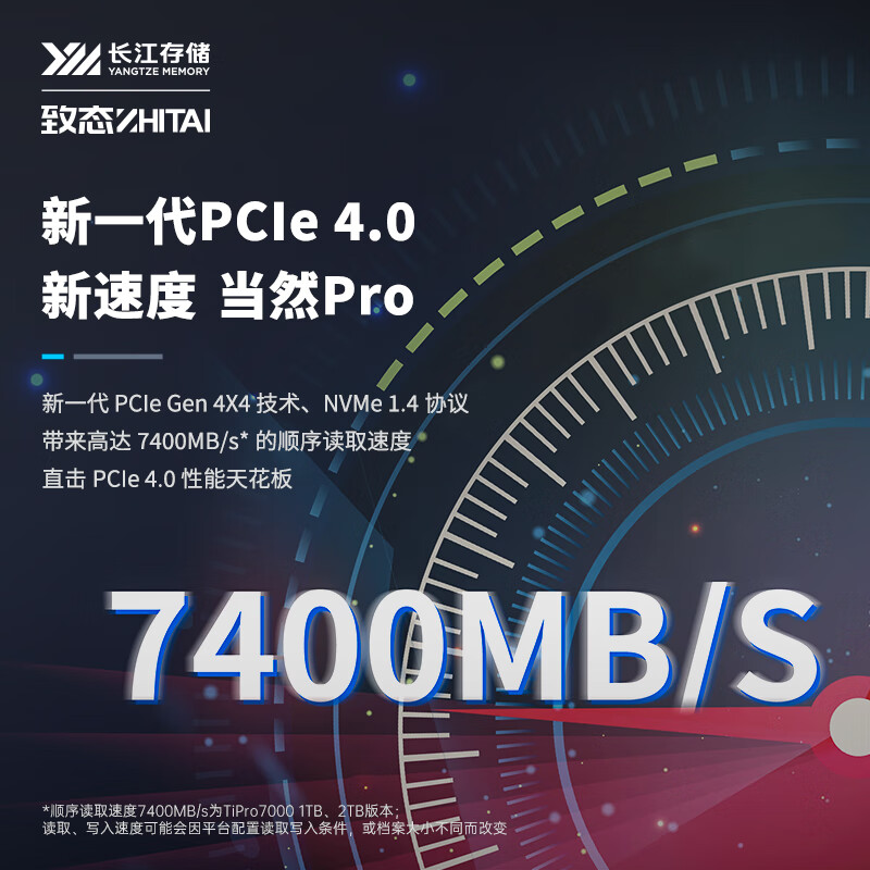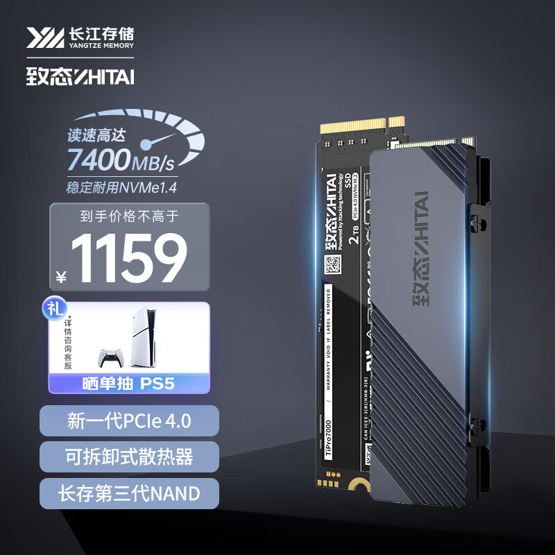 致态(ZhiTai)长江存储 2TB SSD固态硬盘 NVMe M.2接口 TiPro7000系列 (PCIe 4.0 产品)价格:1159.00元!