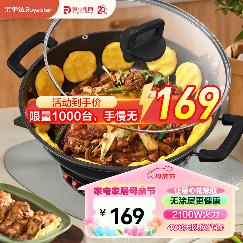 荣事达 电炒锅 家用铸铁多功能电热锅电铸铁锅炒锅多用途锅山东锅电煮锅电火锅电蒸锅 RDAF-32价格:179.00元!