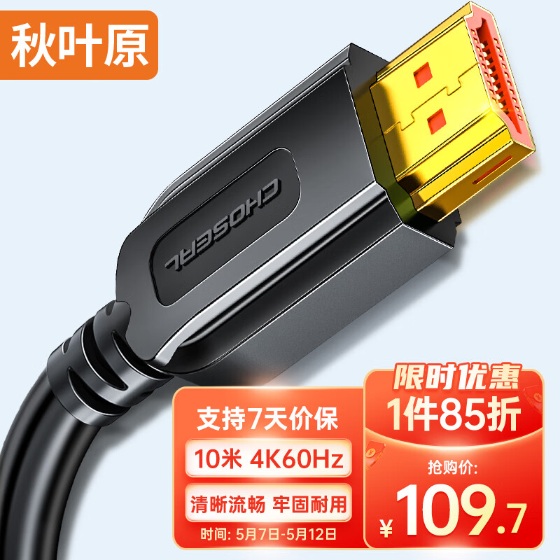 秋叶原(CHOSEAL)HDMI线2.0版 4k/60hz高清 3D视频工程线 投影仪机顶盒电脑笔记本连接线 10米 QS8101T10价格:129.00元!