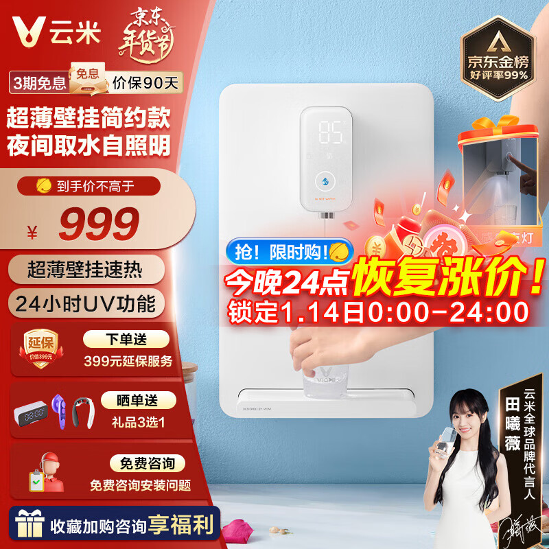 云米(VIOMI) 管线机家用壁挂式饮水机UV功能 速热即饮智能LED直饮机 净水器搭档伴侣 四段控温 全通量可匹配 【温热款:简约超薄百搭款】价格:1299.00元!