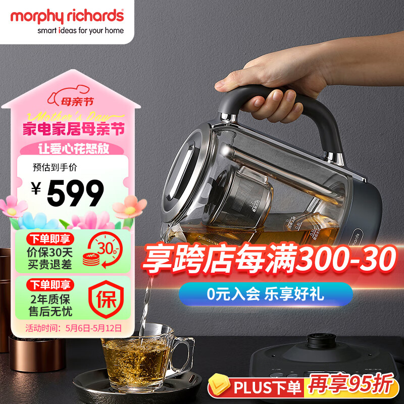 摩飞电器(Morphyrichards)养生壶煮茶器煮茶壶智能升降电水壶烧水壶电热水壶迷你玻璃花茶壶黑茶 MR6088灰价格:659.00元!