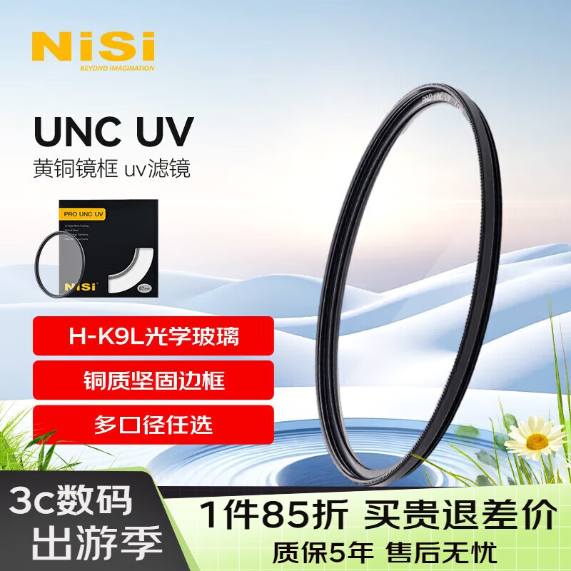耐司(NiSi)超薄铜框UNC UV镜 58mm(金框) 双面多层镀膜单反微单相机镜头保护滤镜 适用于尼康佳能索尼价格:138.00元!