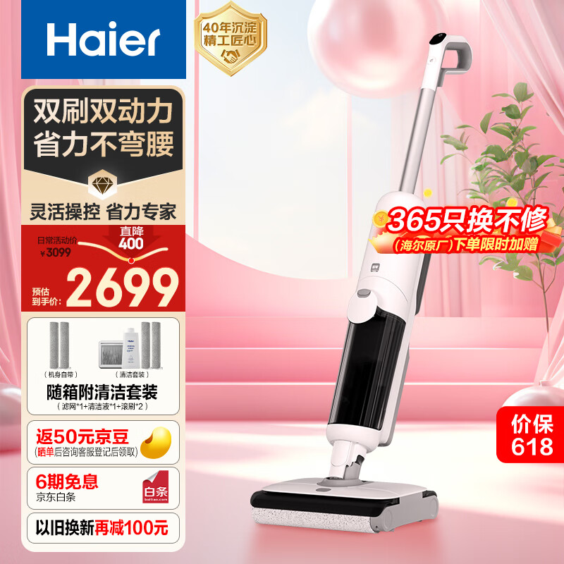 海尔(Haier)无线智能洗地机吸洗拖一体自动清洗全自动拖地机扫地机器人吸尘器家用全链柔烘双刷双动力Z10Pro价格:3099.00元!