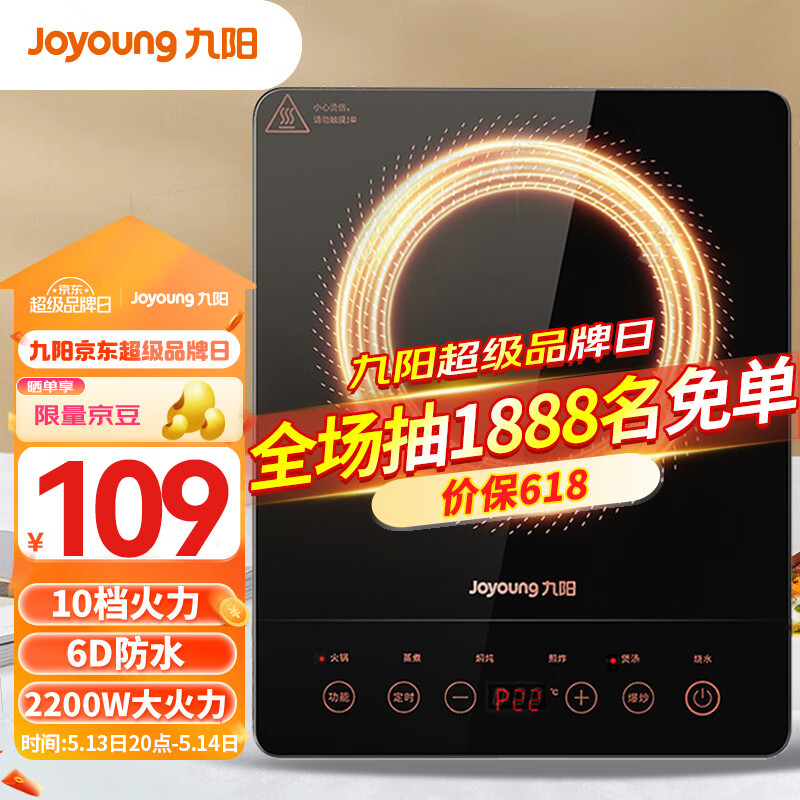 九阳(Joyoung)电磁炉电磁灶一键爆炒2200W家用火锅耐用面板十档火力定时C21S-C2130价格:109.00元!