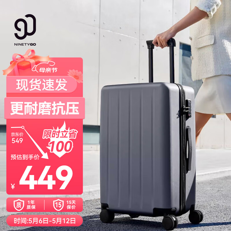 90分行李箱28英寸商务拉杆箱大容量旅行箱密码箱托运箱子多瑙河灰色价格:479.00元!