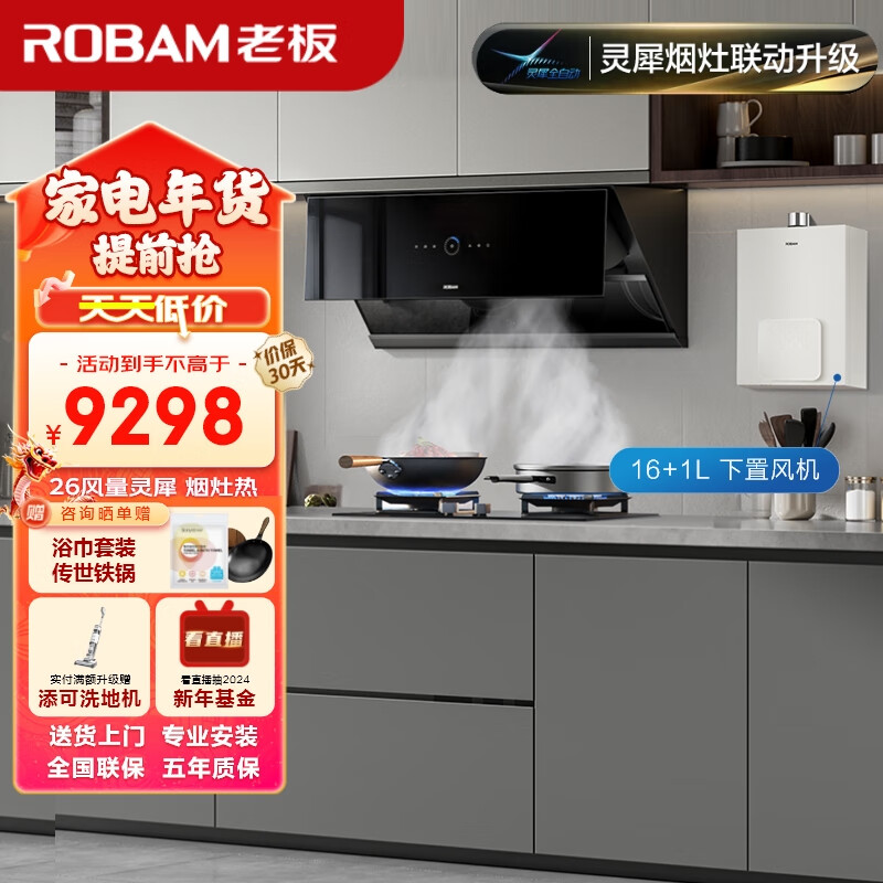 老板(Robam)灵犀抽油烟机厨房多件套 家用25风量侧吸智能变频烟机灶具燃气热水器29X8S黑+57B6DT+HD660A-16价格:8998.00元!