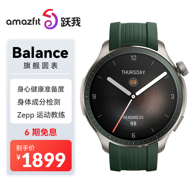 AMAZFIT华米跃我 Balance 雪松绿 智能手表 心率血压 健康监测 滑雪跑步游泳男女士专业运动户外价格:1899.00元!