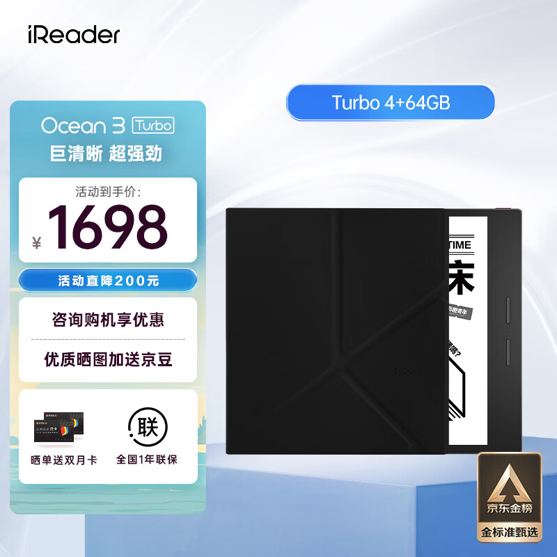 掌阅iReader Ocean3 Turbo 7英寸电子书阅读器墨水屏电纸书电子纸看书学习4+64GB儒雅黑支架磁吸套装价格:1698.00元!