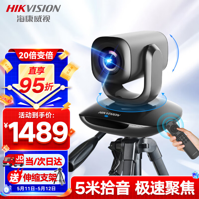 HIKVISION海康威视 视频会议摄像头直播1080P高清摄像头麦克风自动变焦遥控云台远程视频会议直播UVC-V102价格:1599.00元!