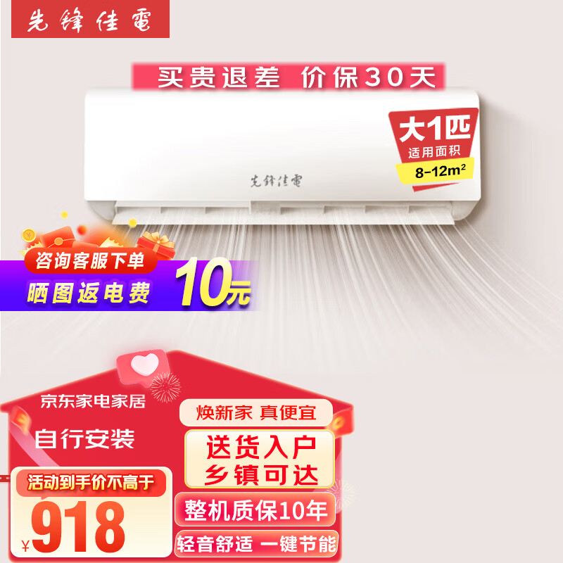 先锋佳电大1匹单冷 新能效 卧室 壁挂式 节能省电 独立除湿 空调挂机 自行安装 KF-26GD/MOAX价格:918.00元!
