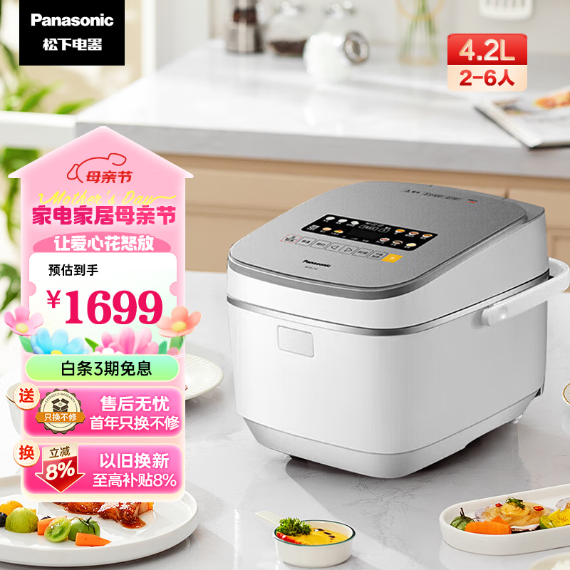 松下(Panasonic)电饭煲电饭锅4.2L IH电磁加热 备长炭铜釜 一键式可拆洗 不锈钢内盖 SR-HTL155价格:939.00元!