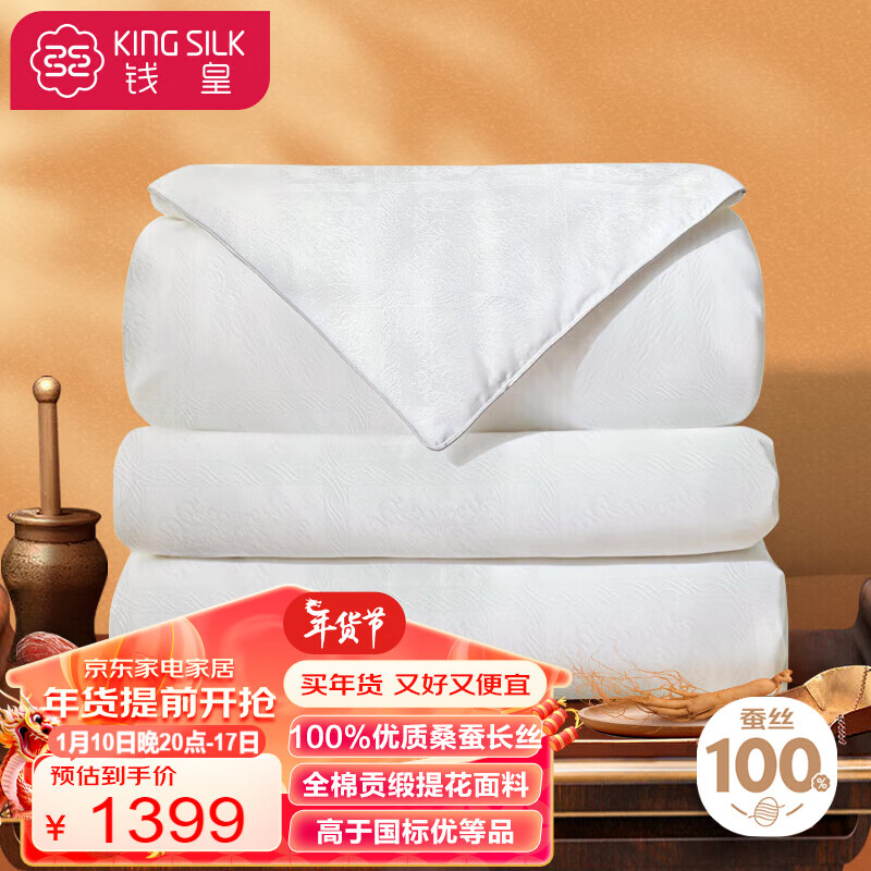 钱皇【步步生莲蚕丝被】100%桑蚕丝子母被 被重3+5斤200*230cm【白】价格:2099.00元!