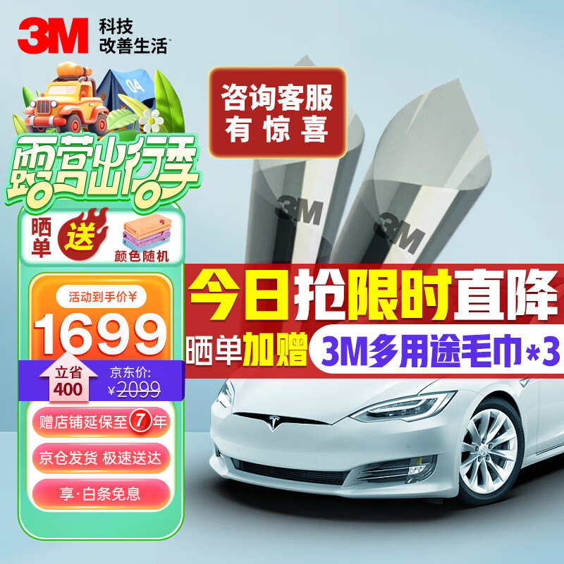3M汽车贴膜 朗清系列 定制新能源特斯拉玻璃车膜太阳隔热车窗膜颜色备注 包施工 国际品牌价格:2099.00元!