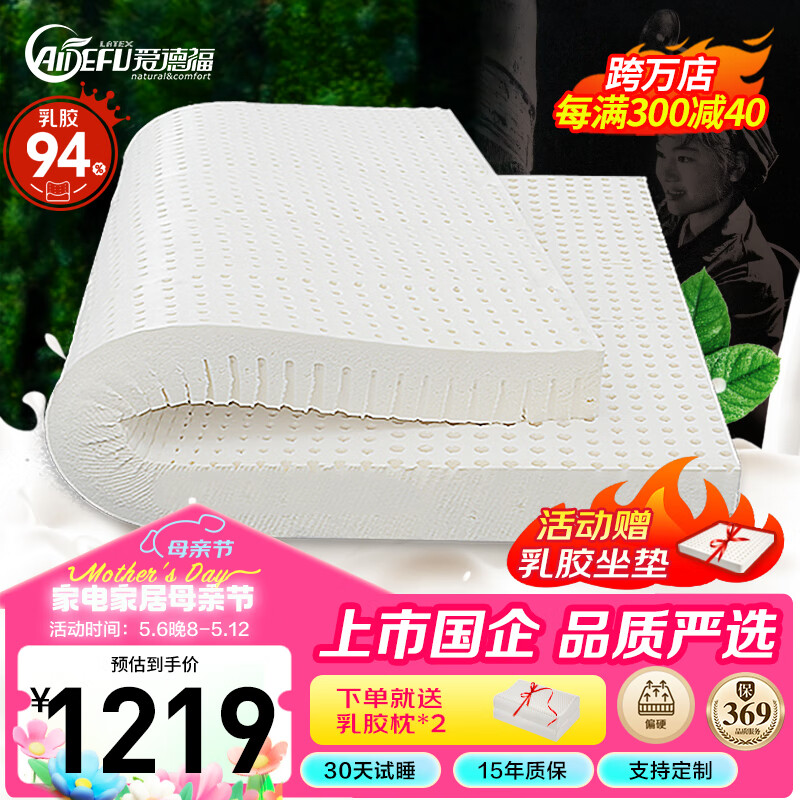 爱德福乳胶床垫泰国进口天然乳胶 榻榻米1.8m单双人180*200*7.5(95D)价格:1439.00元!