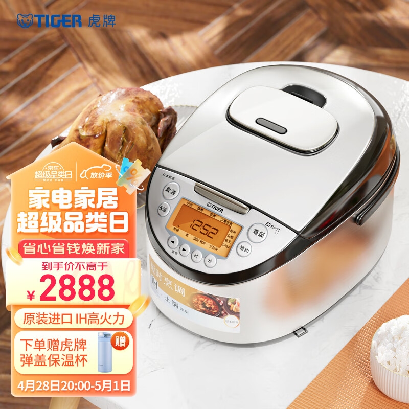 虎牌(TIGER)电饭煲 Pro 日本进口智能IH土锅涂层电饭煲 5L家用预约3-10人JKT-D18C价格:2888.00元!