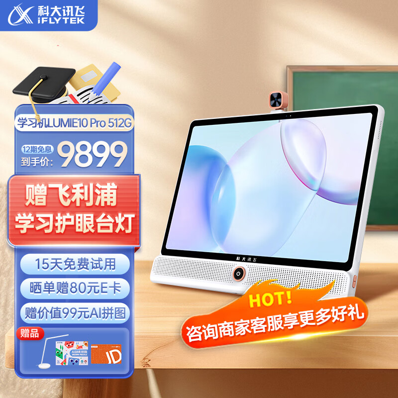 科大讯飞AI学习机LUMIE10 Pro (8+512GB) 星火大模型 幼小初高全龄段 大屏护眼 学生平板 英语学习 17英寸价格:9899.00元!