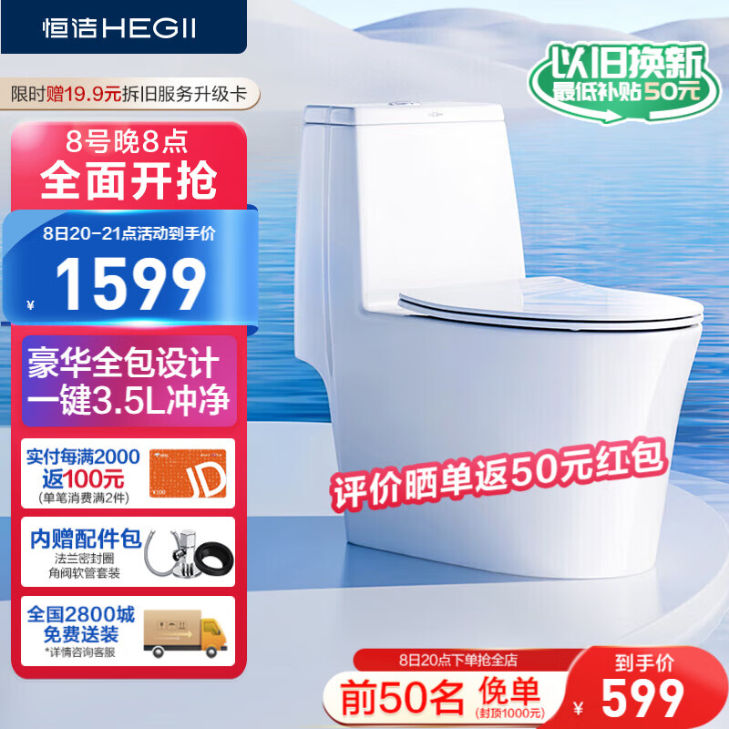 1、物流特别快,安装师傅特别好,主要是马桶看起来很不错,冲劲特别大一看就是很有质感的,不是那种很劣质的马桶,性价比真的很高,对比了好几家买了恒洁的真的买对了!推荐给大家,以后还会买恒洁!